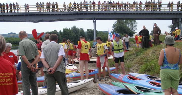 | The annual kayak race on the Wisloka River near Debica celebrated its 50th anniversary in 2005. The event draws competitors and enthusiasts from miles around. Many bring tents and set up camp in an area designated by the race committee. There is one glitch in the rules, though. Apparently "kayak" is poorly defined in the official rulebook, so the race committee solved the problem by offering a special regatta for home-built "kayaks". Although jeopardized by heavy rains and flooding in the Wisloka Valley in some years, the annual race is still conducted. Talk about tough competitors. |